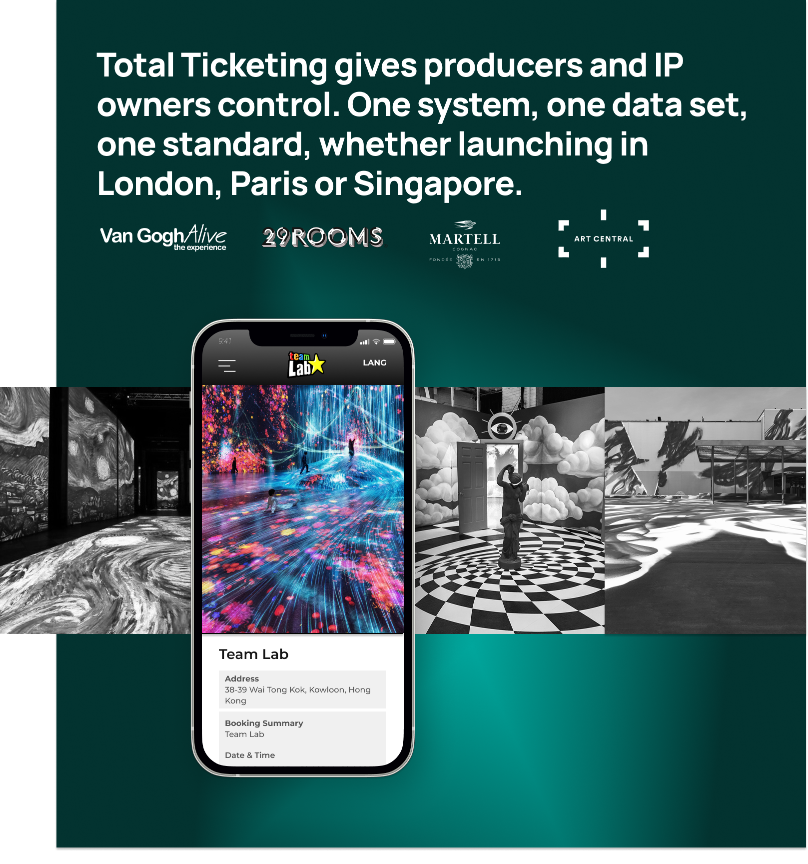 Total Ticketing is built for the kind of productions where precision and reliability matter. The sort of scale seen with TeamLab, Van Gogh Alive and Art Basel, where capacity, timed entry and sustained demand must be handled flawlessly over weeks or months. From extended residencies to internationally touring IP, the platform is designed to remain stable under pressure and consistent across markets.