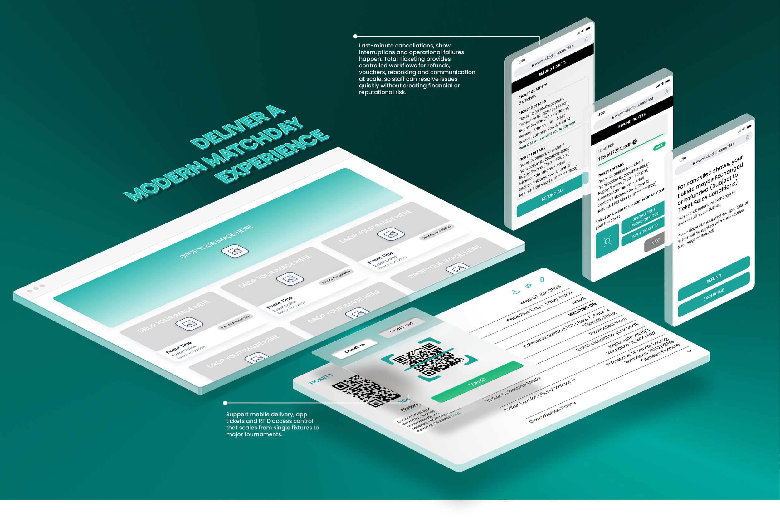 Move away from paper tickets and clunky print at home processes. Support mobile delivery, app tickets and RFID access control that scales from single fixtures to major tournaments.