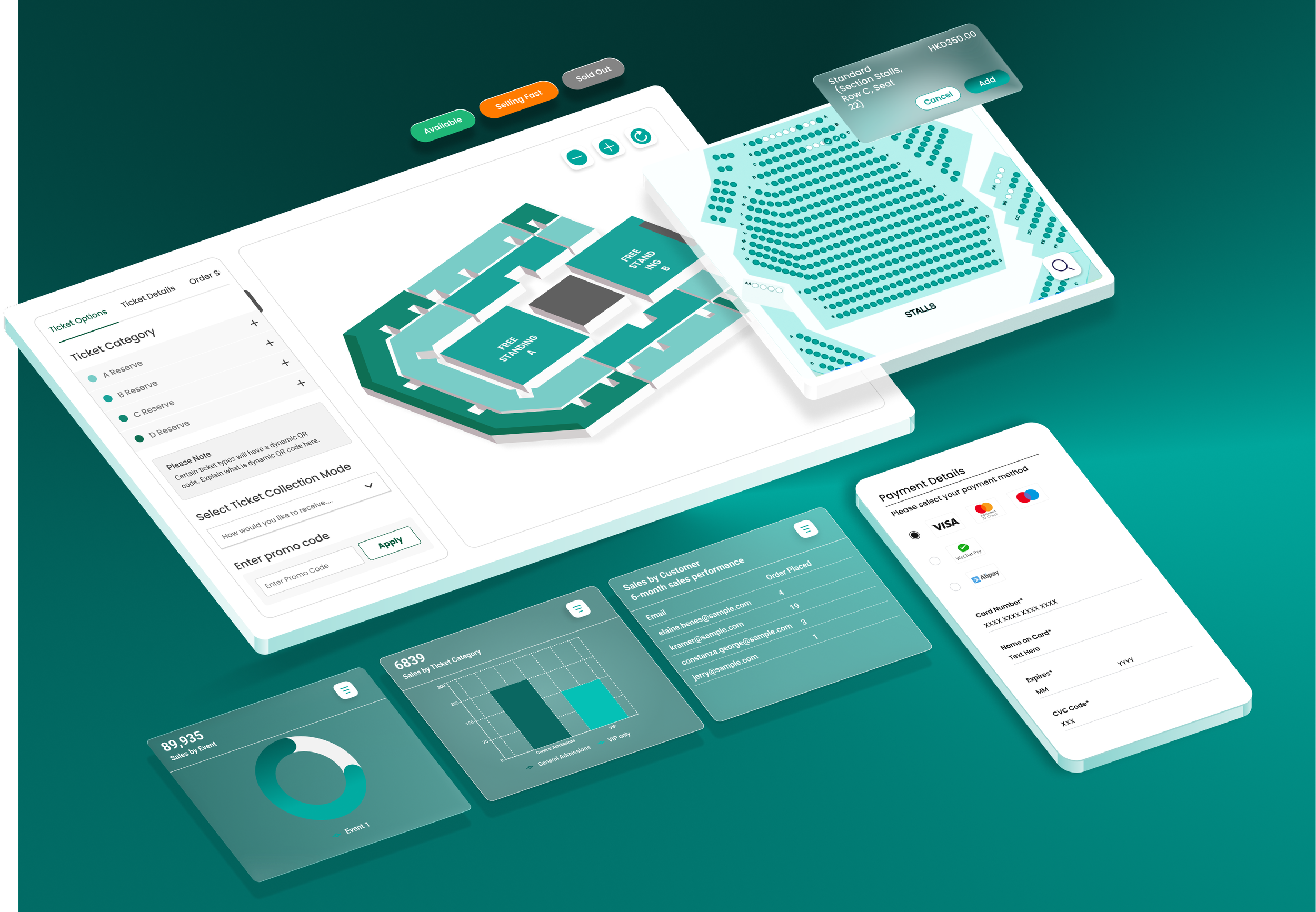 Real time sales and audience dashboards across all events and hirers, so you always know what is selling, who is coming and where the weak spots are.